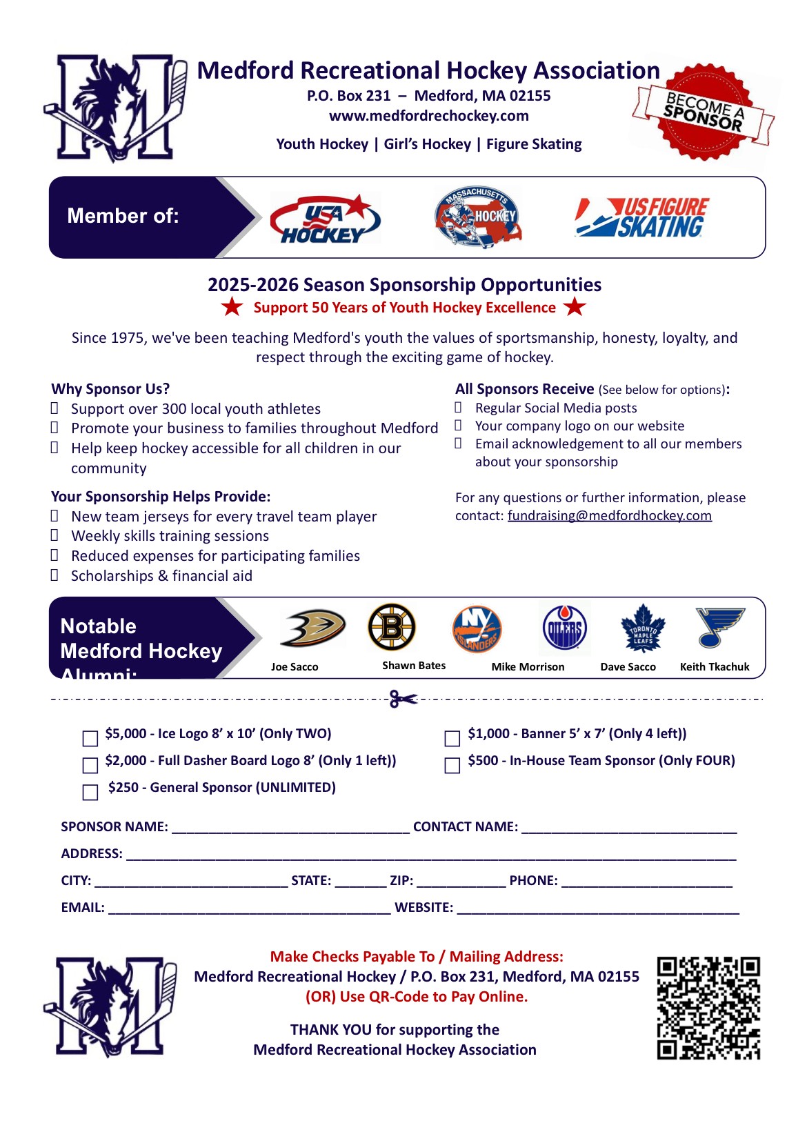 SPONSORSHIP OPPORTUNITIES...Become a sponsor of Medford Youth Hockey